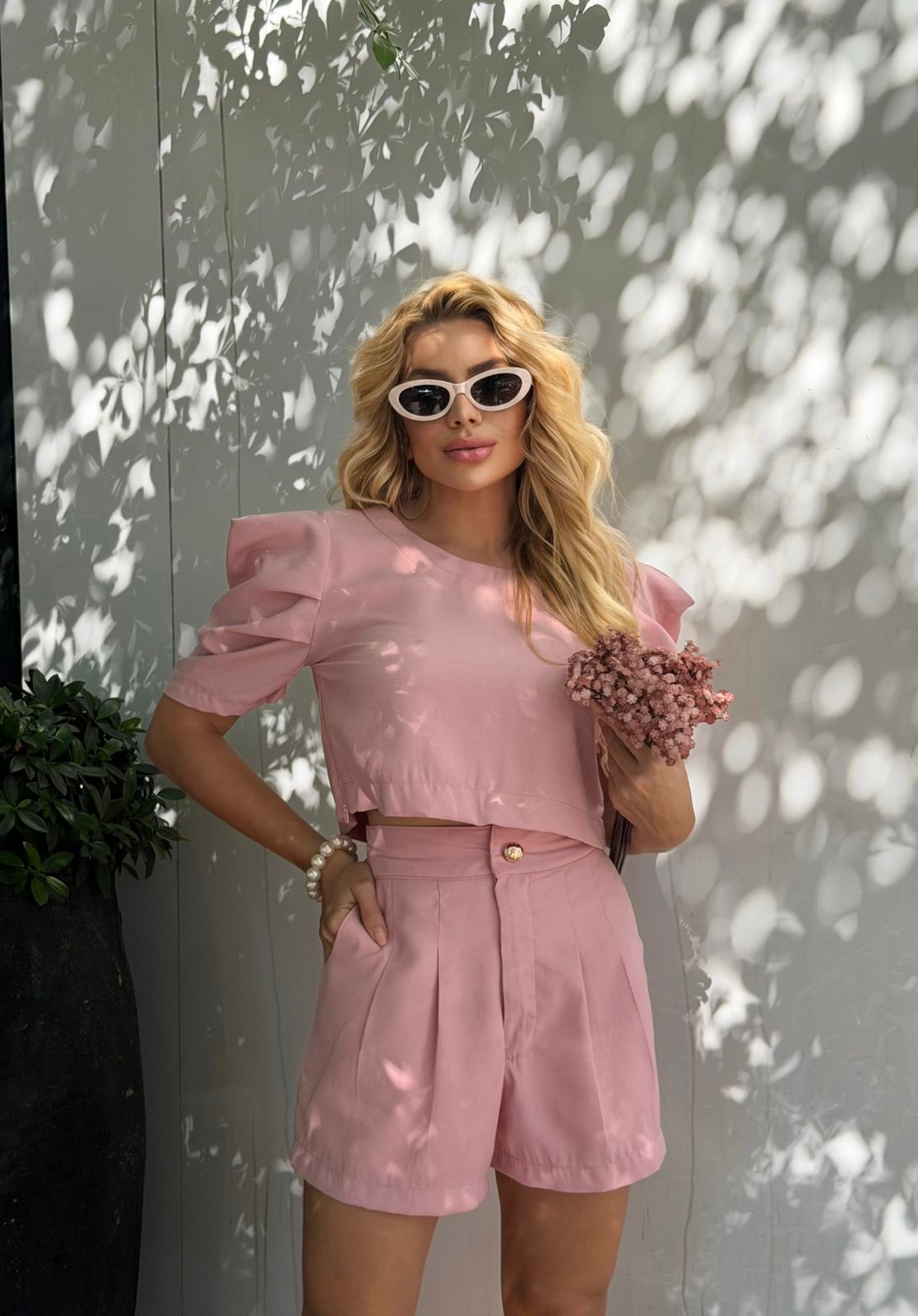 CONJUNTO SHORT COM BLUSA MANGA PRINCESA
