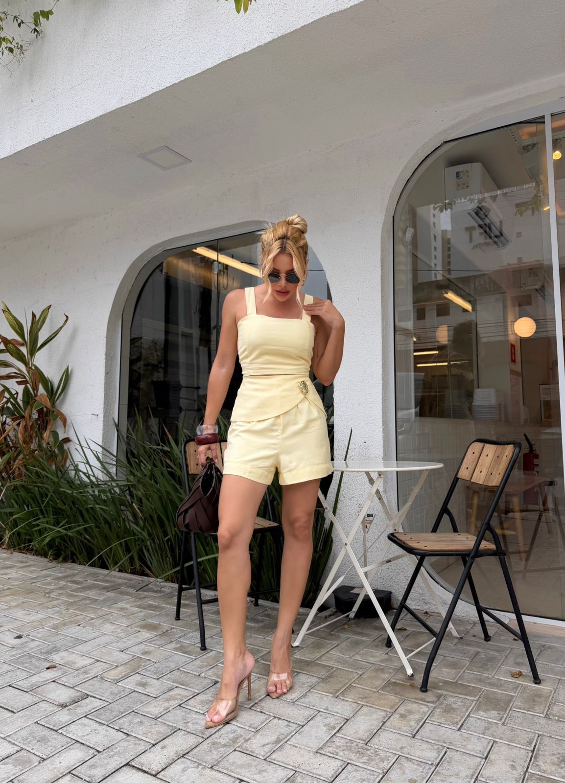 CONJUNTO SHORT COM FIVELA E CROPED
