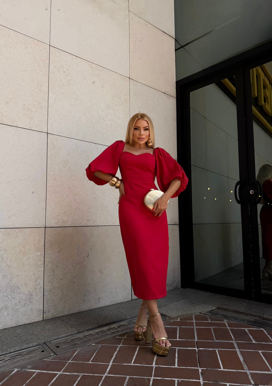 VESTIDO LONGO COM MAGA BUFANTE